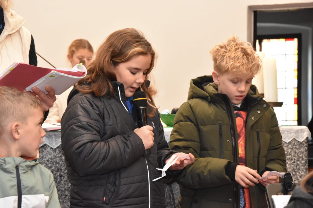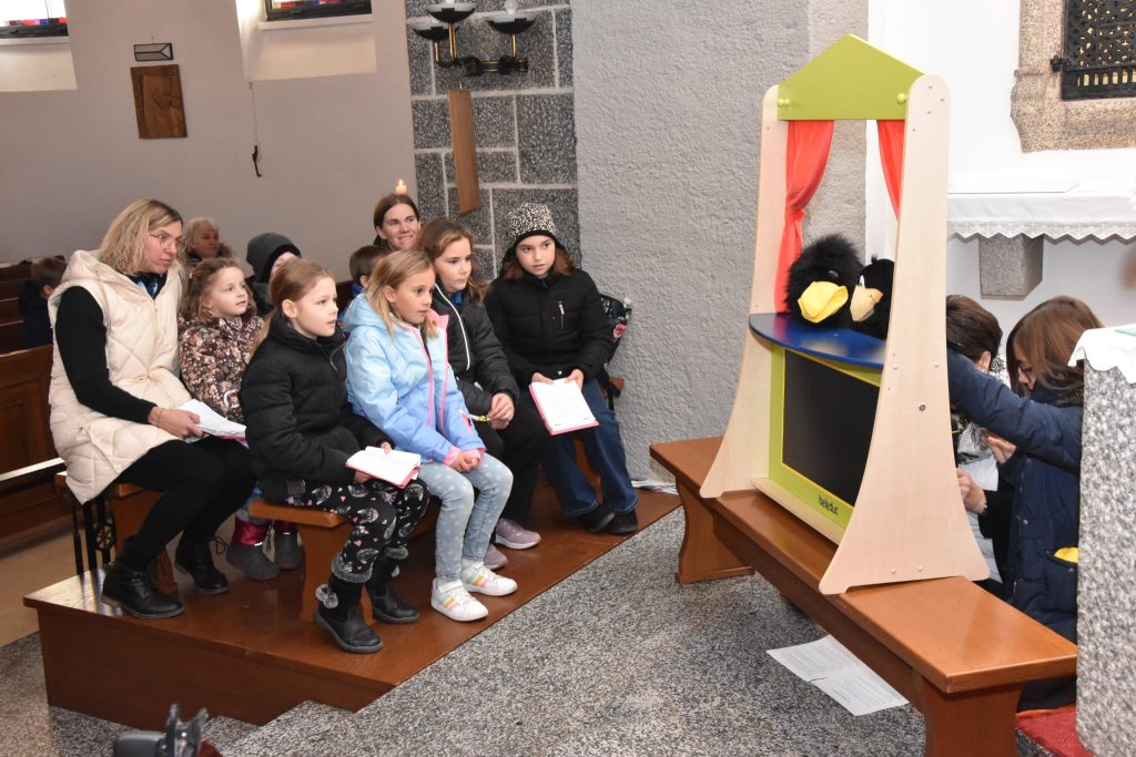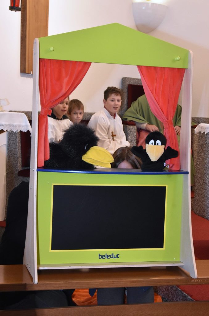 All unsere Zeit kommt aus Gottes Hand – die hellen Stunden und die dunklen Augenblicke, die hektischen Tage, die scheinbar endlosen Zeiten voller Langeweile, aufregende oder angespannte Momente und der tiefe, ruhige Schlaf. Im Gottesdienst wurde auf alle besonderen Momente der Zeit hingewiesen. Nach dem Evangelium wurde ein Handpuppenspiel aufgeführt, indem sich zwei Raben über den richtigen Zeitpunkt unterhalten – Zeit zum Nestbauen, oder Zeit, um den Wind zu beobachten und zu lernen. Und der Feststellung, dass geschenkte Zeit das größte Geschenk ist.