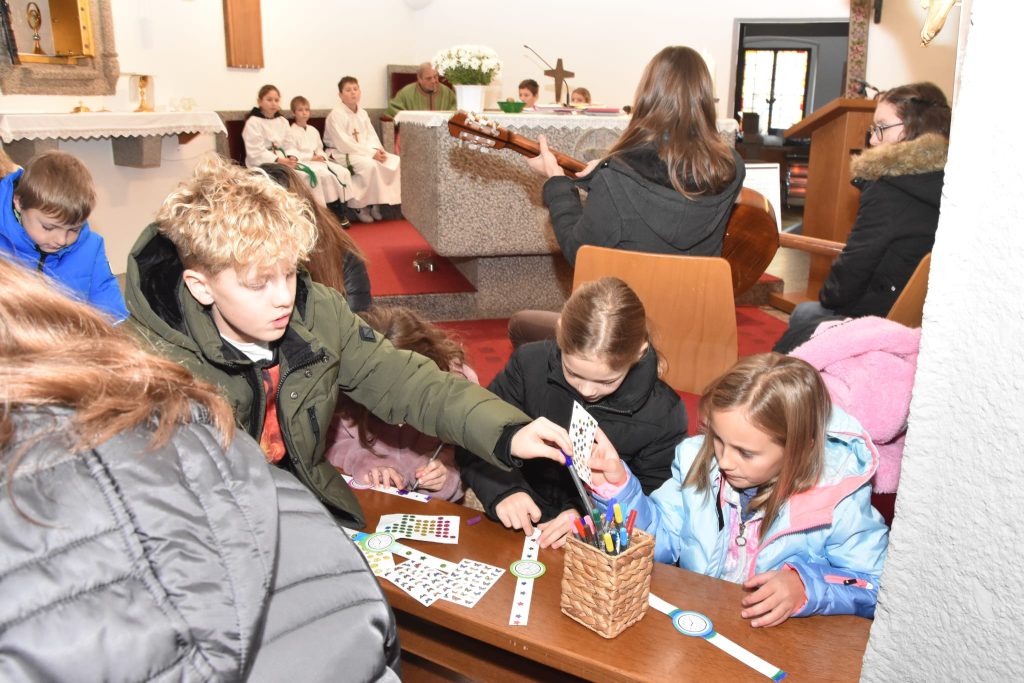 Während der Kommunion konnten alle Kinder eine Armbanduhr aus Papier bemalen.